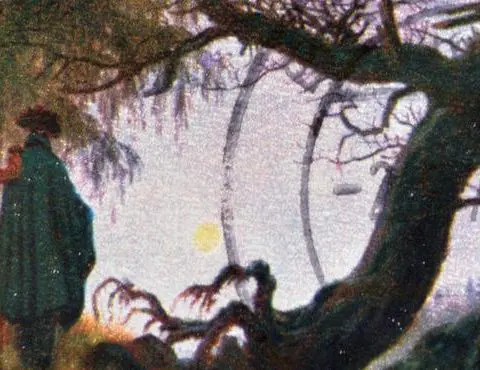 Paysagiste formé à Copenhague, il se voue corps et âme à l’un des thèmes de prédilection du romantisme : l’antithèse de l’homme solitaire et de la nature immense. Caspar David Friedrich affectionne tout particulièrement les sujets hivernaux, les reliefs sauvages, les étendues marines, les ruines et les crépuscules. L’absence d’encadrement latéral et son amour des couleurs translucides contribuent à l’aspect étrange des compositions de ce génie disparu à Dresde en 1840.